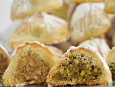 يُخلط الجوز المفروم أو الفستق المفروم بالسكر وماء الورد أو الزهر