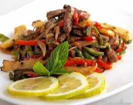 شرائح اللحم مع الأرضي شوكي والفليفلة
