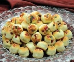 تقرّص العجينة إلى دوائر صغيرة ومتناسقة، تحشى بمكوّنات الحشو، ثم تزيّن بحبّات الفاكهة المجفّفة