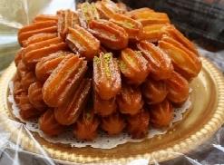 ضعي العجين في ماكينة بلح الشام أو في (كيس حلواني مع قمع مزخرف)