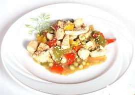 نضيف الفليفلة المقطعة والذرة الصفراء والبازلاء والملح والبهار وعصير الليمون ونقلب الخليط مدة 3 دقائق
