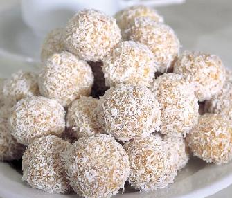 تحضر كرات من هذا المزيج وتغمس في الجوز أو جوز الهند