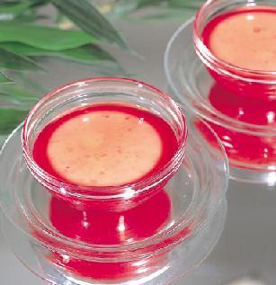 ½ علبة من الجيلو بنكهة الفراولة مذوبة في ¼ كوب من الماء الساخن و¼ كوب من الماء البارد