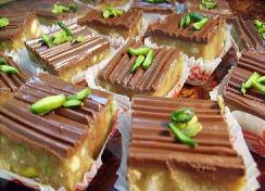 نخلط البسكويت مع الفستق ونترك بعض الفستق للزينة
