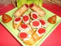 ضعي شرائح الديك الرومي على سطح العمل ورشيها بقليل من الملح و والبهار، ثم ضعي فوقها قطعة من النقانق، ثم القليل من الجبن المبشور