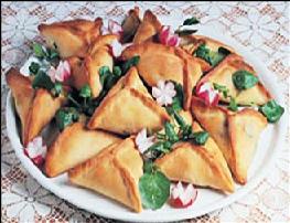 نضع زيت زيتون في وعاء صغير ونغمس كرة العجين في الزيت ثم نفرد كرة العجينة ونضع كمية ملعقة كبيرة من الحشوة ثم تطوى العجينة على شكل مثلث ثم توضع الفطائر في صينية الفرن مدهونة بقليل من الزيت