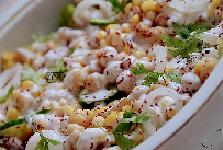 ضعي لبن الزبادي والمايونيز والثوم والملح والفلفل الأبيض وعصير الليمون ، قلبي إلى أن تختلط المكونات مع بعضها و وزعيها فوق السلطة