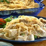 تقلب المعكرونة مع الدجاج، الزبدة، عصير الليمون، البقدونس، ومسحوق الثوم