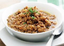 يسكب هذا الخليط فوق العدس ويحرك معه جيداً
