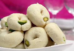 توضع المكسرات في وسط كل كرة بالضغط الخفيف عليها