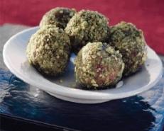 تُغلّف الكرات بالفستق المطحون وتُقدّم