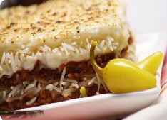 في صينية فرن متوسطة, وزعي 1 كوب من صلصة البشاميل ثم ثلث كمية الأرز المطبوخ يليها نصف كمية جبن الموزاريلا ثم نصف كمية خليط اللحم, كرري العملية