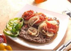 توزع شرائح البندورة و البصل و من ثم شرائح البطاطا