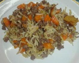 بعد أن يصبح البصل ذهبيا نضيف إليه اللحم و الجزر بعد أن نتخلص من ماءهما