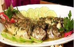 بواسطة سكين حادة تشق أطراف السمكة بطريقة منحرفة ثم توضع السمكة في صينية الفرن وتدهن بالزيت جيداً من الجهتين ويصب عليها عصير الحامض وتدخل إلى فرن متوسط الحرارة مدة 40 ـ 50 دقيقة