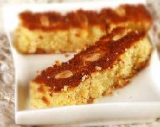 توضع النمورة في الفرن بدرجة حرارة 350 لمدة 30 دقيقة حتى يحمر الوجه ثم تخرج وتقطع بشكل مربعات