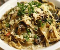 تسكب الصلصة على الفيتو تشيني وتقدم بالكريمة مع السلامي والمشروم