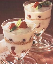 اسكبي هذا الخليط فوق الخليط الأول ، ثم اخلطي المقادير جيداً ،وزعي البسكويت داخل أربعة أكواب من أكواب التقديم ، ثم أضيفي إليها خليط القشدة والسكر ، كرري العملية مرة أخرى حتى تمتلئ الكؤوس