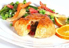 تحشى الزبدية بخليط الخضار و من ثم تغلق جيدا بالأطراف الزائدة ومن ثم تقلب في صينية خاصة بالفرن مدهونة بمادة دسمة وينزع ورق النايلون