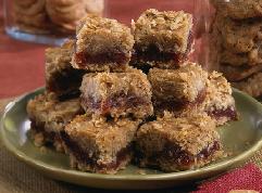 ندهن صينية مربعة بالزبدة ثم نضع نصف كمية مزيج الطحين وفوقها مزيج التمر ونسويها