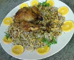 يخلط الأرز بعد الاستواء مع المكسرات للحصول على حشوة الدجاج