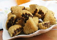 تقطع العجينة المحشوة تمر إلى مثلثات صغيرة