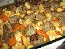 عندما تتماسك الكرات ويخرج مرقها نضيف الخضار المتبل بالملح والفلفل وقليل من البصل المفروم ونمزج الجميع مع بعض ونضيف القليل من المرقة وتعاد إلى الفرن مره أخرى مع تغطيتها بالقصدير