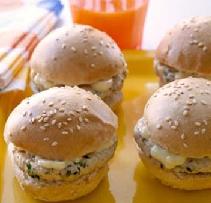 ضعي كل فطيرة في خبز من نفس الشكل والحجم وعليها صوص المايونيز والمستردة ثم قدميها