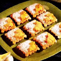 ابسطي العجينة بشكل رقيق جدا ثم ضعي العجينة في قوالب صغيرة مربعة