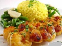 يرش الروبيان أو الجمبري بالملح والفلفل الأسود ويدهن الجمبري بالخليط