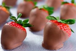 بردي حبات الفراولة المغطسة بالشوكولا لمدة 30 دقيقة في الثلاجة