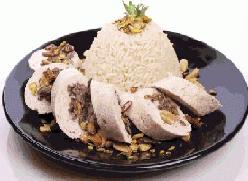 تقطع بشكل حلقات و تقدم مع الأرز و تزين بالفستق المفروش
