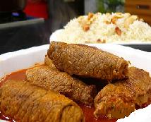 تفرد شريحة من شرائح اللحم و توضع ملعقة من الحشوة على أحد أطرافها ثم يطبق طرفاها للحصول على جيب صغير ثم يخاط طرفا الجيب , تكرر العملية حتى تنتهي لديك كل كمية الشرحات