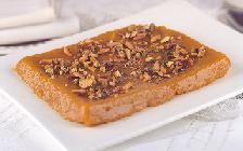 يقلى الصنوبر أو يحمص ويخلط قسم منه مع المفتقة، تسكب المفتقة في طبق مسطح وتترك لتبرد ثم تزين ببقية الصنوبر وتقدم فاترة