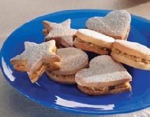 تُوزع ملعقة صغيرة من الحشوة على سطح نصف كمية البسكويت ثم تُغطى بقطع البسكويت المتبقية