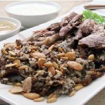 يُصفّى الأرز المغسول المنقوع بالماء الفاتر ويُضاف إلى اللحمة ويُقلّب حتى يمتصّ الماء