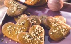 اصنعي بواسطة قطاعة أشكالا على شكل قلوب، ادهني سطحها بالحليب ورشي القليل من اللوز أو البندق المطحون