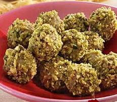 يُقرّص المزيج على شكل كرات صغيرة، ثم تُغمس الكرات في الفستق المبشور وتُغطى وتُترك في البراد