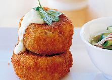 أحضري طبق التقديم وضعي فيه فطائر السمك ثم قدميه لعائلتك مع المايونيز والسلطة الخضراء