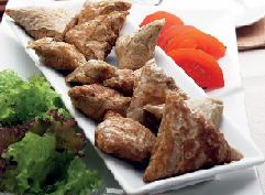 تدهن هذه المثلثات بالزيت وتخبز في الفرن حتى تصبح هشة أو تقلى في الزيت الساخن حتى تصبح وردية اللون