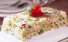 يدهن قالب جاتوه دائري بالزيت ويسكب فيه خليط الأرز والخضار، يضغط على الخليط جيداً في القالب ويغطى ويترك جانباً 10 إلى 15 دقيقة، ثم يقلب فوق صينية التقديم