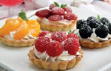 تزين قطع التارت بأنواع الفاكهة ويرش عليها السكر الناعم