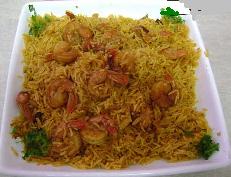 نسلق الأرز نصف سلقه بعد ذلك نضع نصف كمية الأرز في طنجرة أخرى ونضع الجمبري مع الصوص وكل المكونات فوق الأرز ثم نضع الطبقة الثانية