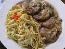 يُقدم اللحم ساخناً مع معكرونة بالخضروات أو أرز أبيض