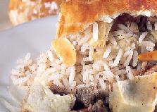 توضع العجينة الجاهزة في وعاء سلطة عميق، ويسكب فوقها مزيج الأرز والأرضي شوكي تطوى الحواف الأربع للعجينة، ويقلب محتوى الوعاء فوق صينية غير لاصقة مدهونة بالماء يدهن سطح العجينة بمزيج البيض وتخبز الصينية في فرن حرارته 350 درجة فهرنهايت أو 180 درجة مئوية حتى تنتفخ وتصبح وردية اللون