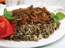 تقدم المدردرة مع الكبيس والسلطة الخضراء