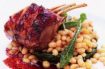 يقسم كل ضلع إلى نصفين ويقدّم مع أوراق سبانخ ذابلة بالصلصة وسلطة الفاصوليا