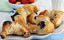تخبز قطع الكرواسان في الفرن الساخن لمدة 12 دقيقة تقريباً أو حتى تحمرّ قطع الكرواسان قليلاً وتنضج