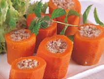 يقشر الجزر ويفرغ داخله بواسطة المنقرة، مع الانتباه إلى عدم تفتته