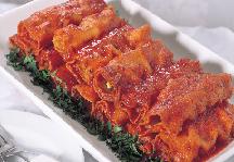 تسكب نصف كمية الصلصة الحمراء في قعر مقلاة غير لاصقة قبل رصف قطع الكريب فيها تسكب بقية الصلصة فوق قطع الكريب وتخبز لمدة 20 دقيقة في فرن حرارته 350 درجة